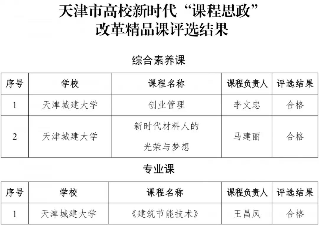 日前,天津市教育委员会下发了《关于公布100门天津市高校新时代“课程思政”改革精品课评选结果的通知》,我校《创业管理》《新时代材料人的光荣与梦想》《建筑节能技术》3门课程通过验收,这是我校落实立德树人根本任务,扎实推进“课程思政”建设取得的可喜成果。
