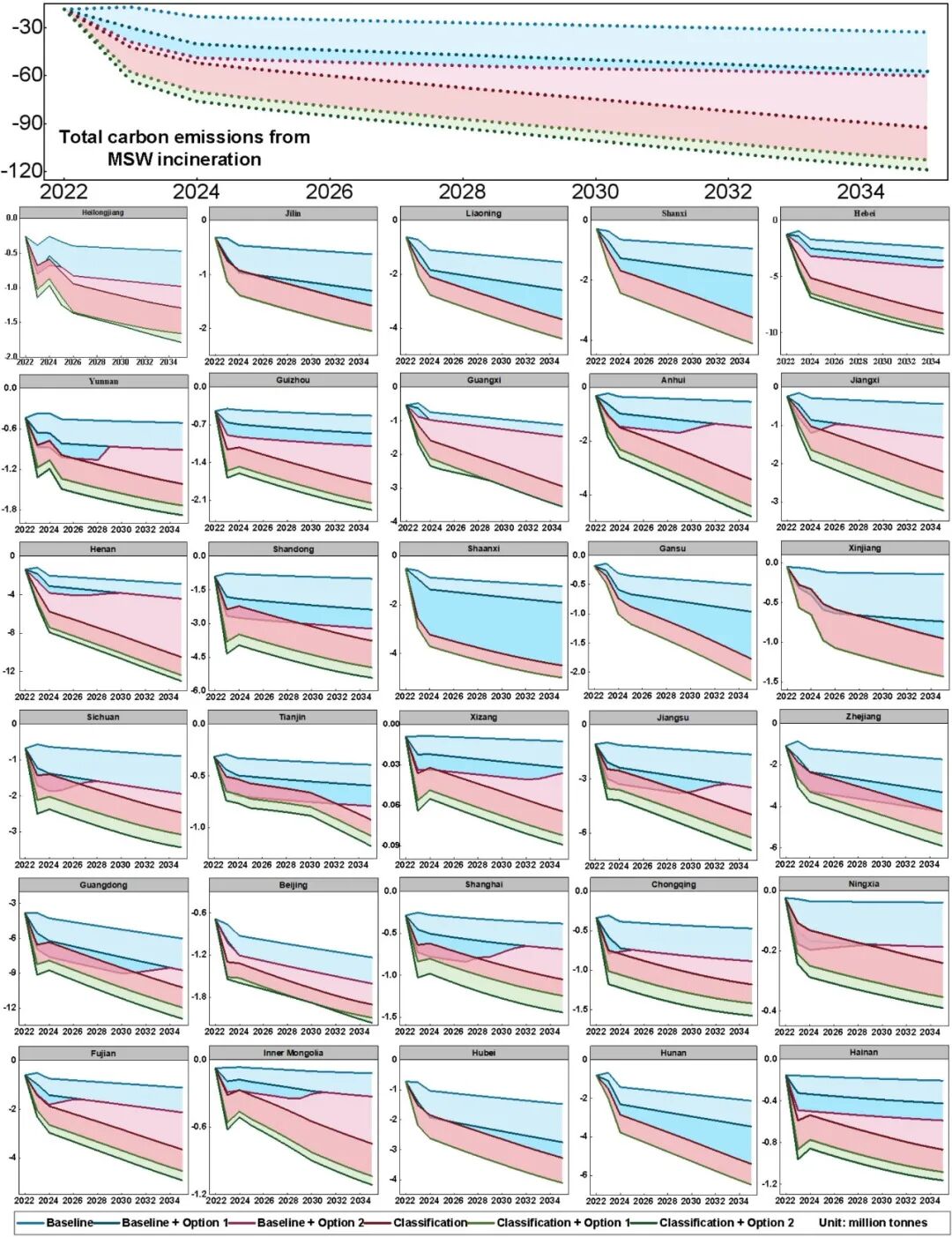 图5. 2022—2035年国家/省级垃圾焚烧行业的碳减排潜力