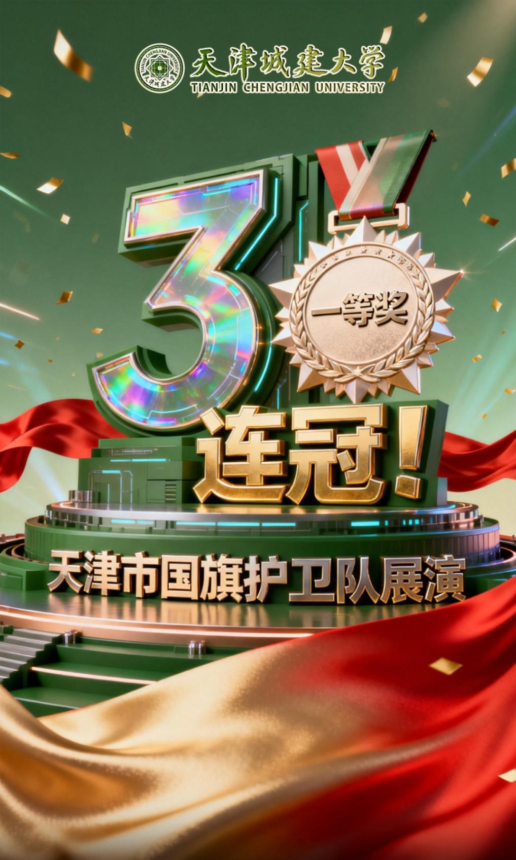 三连冠🥇!天城大国旗护卫队再获展演一等奖! 天津城建大学 2026年1月5日 17:34 天津